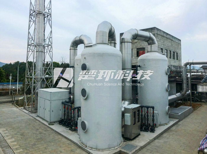 勁牌公司毛鋪酒廠三分廠污水處理站設(shè)計總處理水量為3000噸/天,采用預(yù)處理+厭氧(MUASB)+好氧(A/A/A/O+A/A/O)+深度處理的處理工藝流程。設(shè)計除臭總風(fēng)量35000 m3/h。主要對產(chǎn)生大量惡臭氣體的污水處理單元包括格柵井、調(diào)節(jié)池、初沉池、混合池、厭氧池、循環(huán)水池、中間水池、脫水機房污泥堆場和污泥池共九個單元等產(chǎn)生臭氣進行除臭處理,達標(biāo)排放。